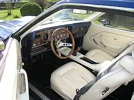 - Пакет Mach 1 — у которого акцент был сделан на внешний спортивный стайлинг, возможность выбора двигателей разных мощностей (351-й двигатель в версиях 250/290/300 л. с.; а так же 428ой 335 л. с.), возможность комплектации авто по принципу конструктора с выбором комфортного интерьера и опций Deluxe, электроники, и выбором спортивных опций, таких как улучшенные тормоза, подвеска и усилитель руля.