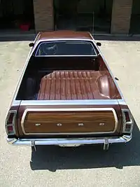 Ford Ranchero имеет приблизительный объём кузова в 31 кубический фут, что почти соответствует размеру кузова стандартного 6½ футового грузового пикапа.[13]