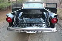 | Ford Custom Ranchero 1957 модельного года — вид спереди | Дверь грузового отделения и задняя оптика Ford Ranchero 1957 модельного года | Интерьер салона Ford Custom Ranchero 1957 модельного года | Открытое грузовое отделение Ford Custom Ranchero 1957 модельного года | Ford Custom Ranchero 1957 модельного года — вид сбоку |