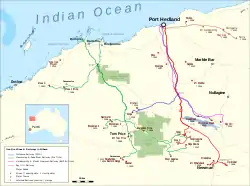 Fortescue Metals Group построила железную дорогу протяжённостью 260 км для перевозки железной руды и порт Herb Elliott вблизи Порт-Хедленда[18][19]. Она имеет эстакаду над железной дорогой Маунт-Ньюмен и пересечение путей с железной дорогой Голдсуорти, обе из которых принадлежат компании BHP Billiton. Впервые транспортировка руды по железной дороге FMG произошла в мае 2008 года спустя 3,5 года после начала её строительства[19].