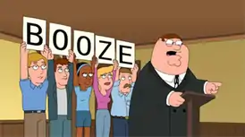 Брайан и Питер решили пойти в кино вместе. Питер проносит с собой алкоголь, и вскоре мы видим их в крайне нетрезвом состоянии, мешающим всему залу. Сосед Питера, Джо, вызывает их обоих в суд. Судья решает приговорить их к 30-дневному посещению общества Анонимных Алкоголиков (АА), чему Питер и Брайан очень огорчаются. На первом заседании Питер говорит, что алкоголь — это худшая часть его жизни, и они с Брайаном искренне хотят бросить пить. Понимая, что люди в АА никого не судят за пьянство, Брайан и Питер решают принести 3 ящика пива на их следующее собрание. Во время следующего собрания Джо приезжает к месту собрания АА по вызову о жалобе на шум. Увидев его из окна, все начинают быстро заметать следы пьянки, и, когда Джо заходит к ним, он видит помещение, похожее на церковь, в котором Питер, выступая в роли священника, проводит «службу» в виде музыкального номера. Джо уходит.