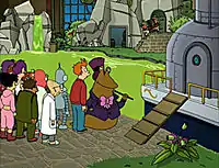 ![]() Команда «Межпланетного экспресса» на фабрике Слёрма | |