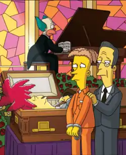 Вся семья Боба присутствует на похоронах: его мать, Джудит Андерданк, известная Шекспировская актриса; его отец, доктор Роберт Тервиллиджер-старшего, его брат Сесил, который был выпущен из тюрьмы по этому случаю; его жена Франческа, который стала вдовой; и его сын, Джино. Многие постоянные жители Спрингфилда также присутствуют на похоронах. Чувствуя себя немного виноватым, Барт разговаривает с Сесилом и решает поехать в Похоронное бюро Спрингфилда, чтобы помириться с трупом Боба, прежде чем он будет кремирован, однако Боб поднимается из гроба живым и бросает Барта в гроб, чтобы сжечь его, все время злорадствуя над своим старым врагом. Благодаря Милхаусу Лиза понимает, что всё было искусно спланировано и сделано Бобом и его семьёй. Она объясняет это тем, что Боб, чья мать была актрисой, знал Шекспира слишком хорошо, чтобы случайно неправильно его процитировать, и что он, наверное, поступил так намеренно, чтобы его поймали, и дело дошло до суда, где он был помещен во временное, подобное смерти состояние, вызванное с помощью особой наркотической инъекцией, сделанной его отцом, доктором. Симпсоны бегут в похоронное бюро и успели спасти Барта от сожжения заживо, ослепляя Боба неизвестным прахом.