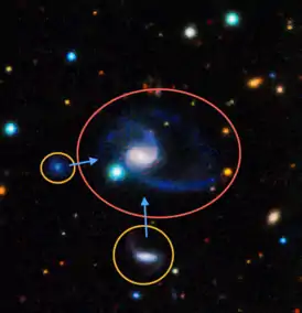![]() Изображение GAMA202627 в искусственных цветах, с его двумя ближайшими компаньонами (выделены). | |