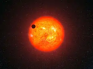 ![]() Авторское представление о транзите GJ 1214 b перед своей звездой | |