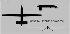 GNAT-750 — американский разведывательный БПЛА, является предшественником БПЛА Predator. имеет нормальную аэродинамическую схему с однобалочным фюзеляжем и задним расположением воздушного винта. Хвостовое оперение — перевёрнутое V-образное.