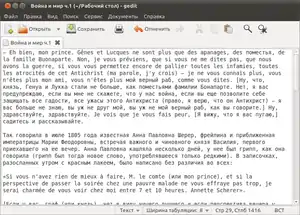 - gedit — текстовый редактор с поддержкой Юникода. Поддерживает использование вкладок для представления нескольких документов в одном окне, подсветку синтаксиса для ряда компьютерных языков, и другие возможности. Функциональность gedit может быть расширена с помощью плагинов.