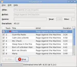 Sound Juicer — приложение для извлечения звуковых дорожек с компакт-дисков. Оно основано на библиотеках GStreamer и позволяет кодировать получающиеся звуковые файлы в любом из форматов, поддерживаемых GStreamer. Sound Juicer может автоматически получать метаданные о диске из базы данных MusicBrainz, а также поддерживает воспроизведение дорожек диска непосредственно в окне извлечения.