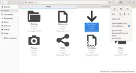 - Версия 3.6 — обновленный дизайн пользовательского интерфейса, символический значок боковой панели, новые функции поиска, удаление многих функций, таких как настройка фона окна, эмблем, режим разделения панели, пространственный режим, сценарии, режим компактного просмотра и древовидный вид. Имя приложения Nautilus было переименовано в Files, хотя в некоторых дистрибутивах оно по-прежнему называется Nautilus[8]. Эти важные изменения вызвали много критики, и различные производители, такие как Linux Mint, решили разветвить версию 3.4[9][10].