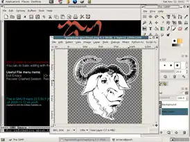 ![]() Снимок рабочего стола операционной системы, основанной на GNU (показаны среда GNOME, редакторы GIMP и Emacs) | |