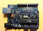 - во встраиваемых системах (например, Arduino, BeagleBone, различные PSoC-комплекты и Raspberry Pi) широко используют GPIO для чтения информации от различных внешних датчиков (ИК, видео, температура, ориентации по 3 осям, ускорения), а также для управления двигателями постоянного тока (используя ШИМ), аудио, ЖК-дисплеями или светодиодами для индикации состояния чего-либо.