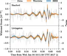 Сигнал был обнаружен детекторами LIGO в 10:11:58,6 UTC 4 января 2017 года. При этом волна дошла до детектора в Хэнфорде на 3 миллисекунды раньше детектора в Ливингстоне. Это позволяет грубо определить область на небесной сфере, откуда мог прийти всплеск; эта область представляет собой протяжённую дугу малого круга. Амплитуда всплеска на Земле составляет около 0,5×10−21.