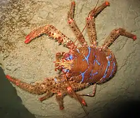 Это крупнейший представитель ракообразных в северо-восточной части Атлантического океана, достигающий в длину 90 мм, с длиной панциря 53 мм[1]. Вид легко идентифицируется благодаря поперечным синим полосам по всему телу[2]. Мясо съедобно, однако коммерческий лов животных не ведётся[2].