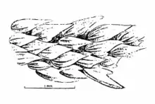 У спинных плавников тупые вершины. Основание первого спинного плавника находится над второй половиной основания брюшных плавников. Второй спинной плавник по размеру и форме схож с первым. Его основание находится над серединой основания анального плавника. Грудные плавники большие и широкие, с закруглёнными концами. Брюшные плавники короткие и низкие[1]. Основание анального плавника составляет 13—16 % от общей длины тела[4]. Хвостовой плавник с маленькой нижней лопастью и вентральной выемкой возле кончика верхней лопасти. Тело покрыто мелкими, перекрывающими друг друга плакоидными чешуйками, каждая из которых имеет форму листовидной короны с горизонтальным хребтом и тремя маргинальными зубчикам. На передней части дорсального края хвостового плавника имеется характерный пилообразный гребень, сформированный крупными чешуйками<ref. Окрас коричневатый, по спине разбросаны тёмные пятна седловидной формы, которые бледнеют за основанием первого спинного плавника. Внутренняя поверхность рта окрашена в чёрный цвет[1][4].