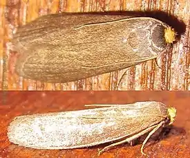 Челюстные щупики едва заметные, гладкие. Губные щупики короткие, у самца и самки различны по форме и длине[1].