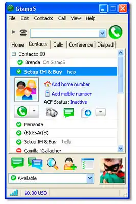 - Бесплатные звонки внутри сети пользователей Gizmo5.