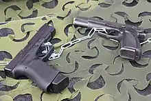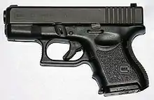 - Glock 43 — компактный вариант Glock 26 с однорядным магазином ёмкостью 6 патронов и длиной оружия 160 мм, позиционируется как «ультракомпактный пистолет».