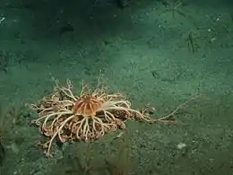 Цвет животного может быть от почти белого до бежевого, желтовато-оранжевого, оранжевого и желтовато-бурого с пёстрым розовым или оранжево-красным рисунком[13][7][2]. Диск, как правило, темнее лучей[12][14].