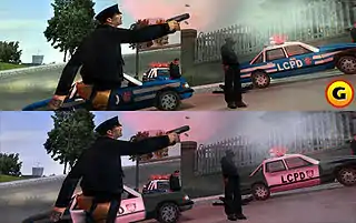 Среди изменений, коснувшихся игры, была замена бело-голубого оформления полицейских автомобилей на бело-чёрное, распространённые во многих штатах США[20]. В бета-версии Grand Theft Auto III цветовое оформление полицейских машин было скопировано с таковых полиции Нью-Йорка, с заменой надписи NYPD на LCPD[19][20][25].