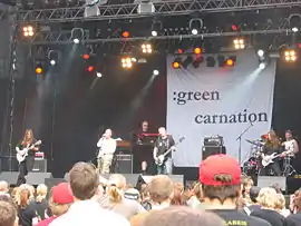 ![]() Выступление Green Carnation на Quart Festival в 2006 году. Слева направо: Терье Вик Шей, Кьетил Нордхус, Кеннет Сильден, Штайн Роджер Сордал, Михаэль Круминс, Томми Джексон | |