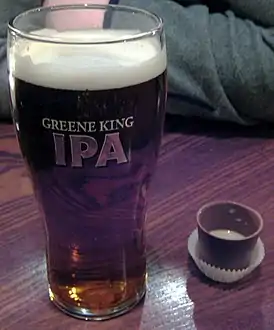 - Greene King IPA — английский IPA (3.6% об.) подается в пабах, есть баночная версия.[9] Выиграл золотую награду CAMRA в 2004 г. в категории биттеров.[10]