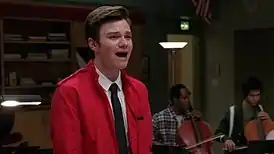 ![]() Крис Колфер в роли Курта Хаммела во время исполнения «I Want to Hold Your Hand» | |||||