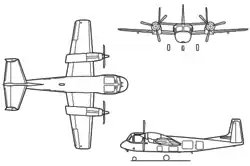 - Проект предусматривал создание на базе «Мохока» транспортного самолёта вертикального взлёта с тандемным крылом и четырьмя ТВД в поворотных гондолах. Удлинённый фюзеляж самолёта позволял разместить 11 десантников. Но тут дальше чертежей дело не пошло.