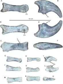 ![]() Реконструкция скелета (голотип выделен белым) | |||||||||||||||||||||||||||||||||||||||||