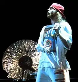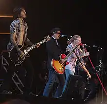 ![]() Guns N’ Roses на сцене Олимпийского стадиона в Лондоне 16 июня 2017 года. Слева направо: Диззи Рид, Ричард Фортус, Дафф Маккаган, Эксл Роуз, Слэш, Мелисса Риз, Фрэнк Феррер | |