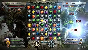 Позже по игре появляются недвижимые камни, разбиваемые лишь специальными способностями монстров, а вражеская шкала, если игрок совершает безрезультатные вращения, в наказание начинает заполняться быстрее. Величина наносимых и получаемых повреждений зависит в первую очередь от выбранного монстра, в ходе сражений существа набирают очки опыта и растут уровнями, за счёт чего повышаются их персональные характеристики: сила, ловкость, защита и т. п. Каждый монстр, как призванный, так и вражеский, имеет свой характерный цвет, и если он совпадает с цветом выстраиваемых камней, скорость заполнения шкал либо вырастает, либо уменьшается[3]. Вражеские монстры, кроме того, могут заменять находящиеся на поле драгоценные камни черепами, которые причиняют вред существу главного героя, если не выстроены в закрывающуюся линию за определённое число ходов[1]. После победы над монстром существо добавляется в бестиарий игрока и может быть использовано для прохождения любых последующих уровней. Новых монстров можно также найти на уровне в виде секретов, как и припрятанные в разных местах полезные предметы, применяемые во время боя, либо нанять в специализированных магазинах[2].