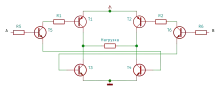Очень часто H-мосты строятся из приборов обратной полярности, таких как биполярные транзисторы типа р-n-р или полевых транзисторов с р-каналом, подключенных к биполярным транзисторам типа n-р-n или полевым с n-каналом.