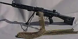 | Вид боепитания | пулемётные ленты M13, DM6, DM1; магазин на 20 патронов (от винтовки HK G3); барабанный магазин на 50 патронов |