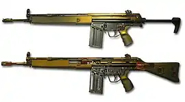 - G3A1 — вариант G3 с выдвижным телескопическим прикладом.