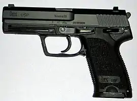 Heckler & Koch USP (нем. Universale Selbstlade Pistole — универсальный самозарядный пистолет) — самозарядный пистолет, разработанный немецкой компанией Heckler & Koch. Впервые представлен в 1993 году. Предназначен для вооружения полиции и армии. На настоящий момент HK USP выпускается под патроны: .40 S&W, 9×19 мм Парабеллум и .45 ACP. Отличается высокой живучестью и надёжностью, хорошей точностью стрельбы. Из недостатков можно отметить значительные размеры оружия, даже в компактном варианте, довольно высоко расположенный центр тяжести и массивный затвор, несколько затрудняющий скрытное ношение.[1]