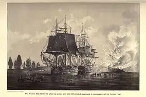 Русский фрегат отбуксировал «Всеволод» в Рогервик, но Centaur смог отогнать шлюпки, пытавшиеся ввести покалеченный корабль в гавань. Партия моряков Centaur сумела принайтовить его бизань к бушприту «Всеволода», затем открыла огонь. Оба корабля сели на мель, обе стороны предприняли попытки абордажа. Но затем подошел Implacable и после 10 минут обстрела принудил «Всеволод» сдаться. Implacable снял Centaur с мели. Англичане сняли пленных и подожгли «Всеволод»; спустя несколько часов он взорвался. Centaur потерял 3 человек убитыми и 27 ранеными. «Всеволод», получивший после первого боя около 100 человек пополнения, потерял 124 убитыми и ранеными. 56 человек из команды смогли доплыть до берега и избежали плена.