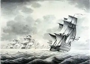 1763 — 28 мая взял 24-пушечный Venganze[5] и 18-пушечный Marte; август, выведен в резерв и рассчитан.