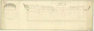 | Тип парусного вооружения | Трёхмачтовый корабль |