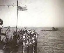 ![]() Экипаж E 11 на палубе лодки после рейда, ок. 24 июля 1915 | |