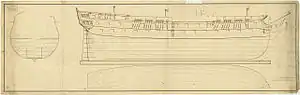 | Тип парусного вооружения | Трёхмачтовый корабль |