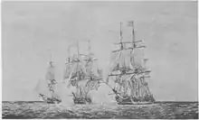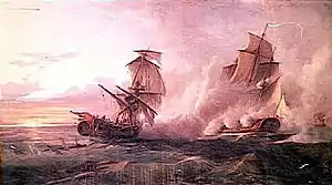 8 июля отбит (вместе с Hancock) британскими HMS Flora и HMS Rainbow.[1]