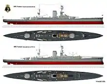 Лёгкий линейный крейсер с двумя 457-мм орудиями в одноорудийных башнях на носу и корме.