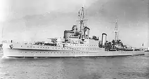 ![]() Лёгкий крейсер «Глазго» вскоре после вступления в строй, в 1937 году |