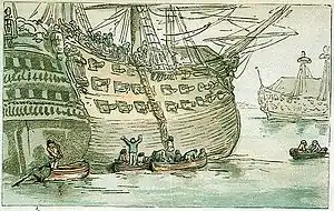 1806 — июль, плавучая тюрьма; лейтенант Эдмунд Непин (англ. Edmund Nepean), командовал до 1811.[5]