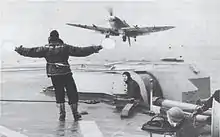 | Grumman F6F-5 «Hellcat» | 610 | 1520 | четыре 12,7 мм пулемёта и две 20 мм пушки или шесть 12,7 мм пулемётов, до 1800 кг бомб и ракет | 1 | Истребитель. 1944-45 гг. 1839, 1844 эскадрильи | |
