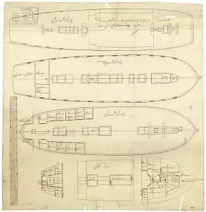 | Орудий на шканцах | 4 × 6-фн пушки + 12 фальконетов |