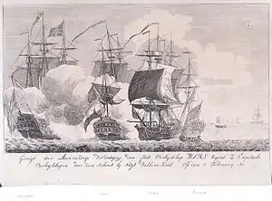![]() HMS Monarch (слева), 4 февраля 1781 |