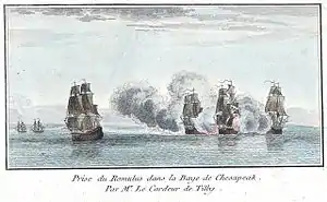 Romulus был взят во французскую службу под прежним названием. 16 марта был у Мыса Генри, капитан шевалье де ля Виллебрюн (фр. Jacques-Aimes le Saige, Chevalier de la Villébrun)[3].