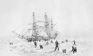 ![]() HMS Terror, выжатый льдами, рисунок капитана Джорджа Бака |