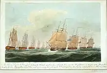 21 февраля 1809 года адмирал Вильоме вышел в море с 8 линейными кораблями, 2 фрегатами, бригом Nisus и шхуной Magpie. Он без большого труда отогнал британский дозор (одинокий Revenge), но капитан Паже последовал за французами, и оповестил блокирующего Лориан коммодора Бересфорда на Theseus в сопровождении Valiant и Triumph, который немедленно пошел наперерез французам. Бересфорд преследовал французов до баскского рейда, где соединился с эскадрой контр-адмирала Роберта Стопфорда[6].