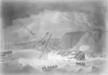 24 ноября 1804 года Venerable, под командованием капитана Джона Хантера, сел на мель у побережья Торбея. Попытка снять корабль не увенчалась успехом и тогда на помощь Venerable подошли Impetueux и Goliah, шлюпки которых начали эвакуировать с корабля его экипаж. Спасательная операция продолжалась до самого утра, когда с Venerable были сняты последние 18 человек. Сам корабль потерял все мачты, получил пробоину ниже ватерлинии и в конечном итоге был разбит о скалы. Трибунал, состоявшийся 11 декабря полностью оправдал капитана Хантера, его офицеров и экипаж[2].